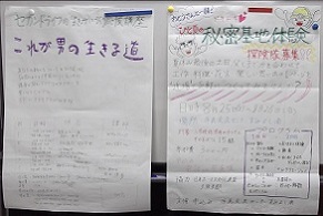 (右)3日目の最後に発表されたイベント「これが男の生きる道」と「ひと夏の 秘密基地体験」。それぞれ、3日間に学んだ企画・広報のポイントが随所に盛り込まれた力作だった(第3回)